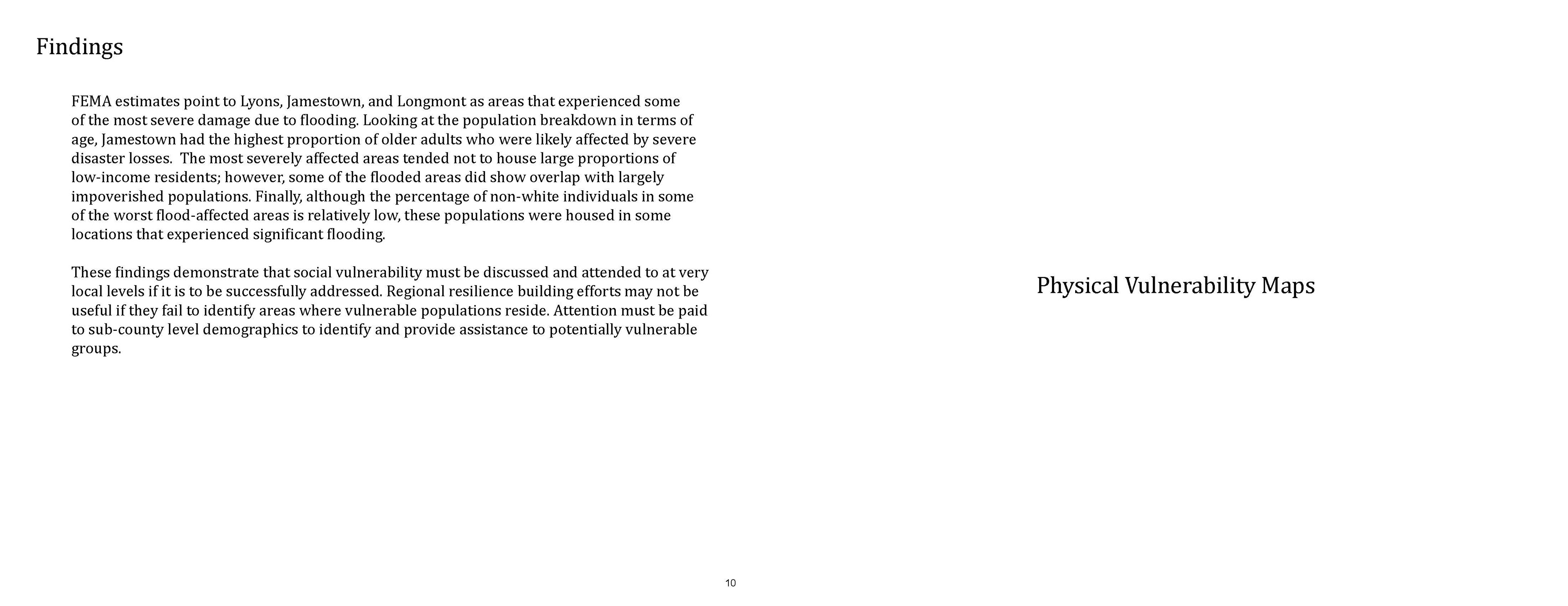An atlas that explores the interactions of several measures of social and physical vulnerability that occurred in Boulder County communities during the 2013 floods.